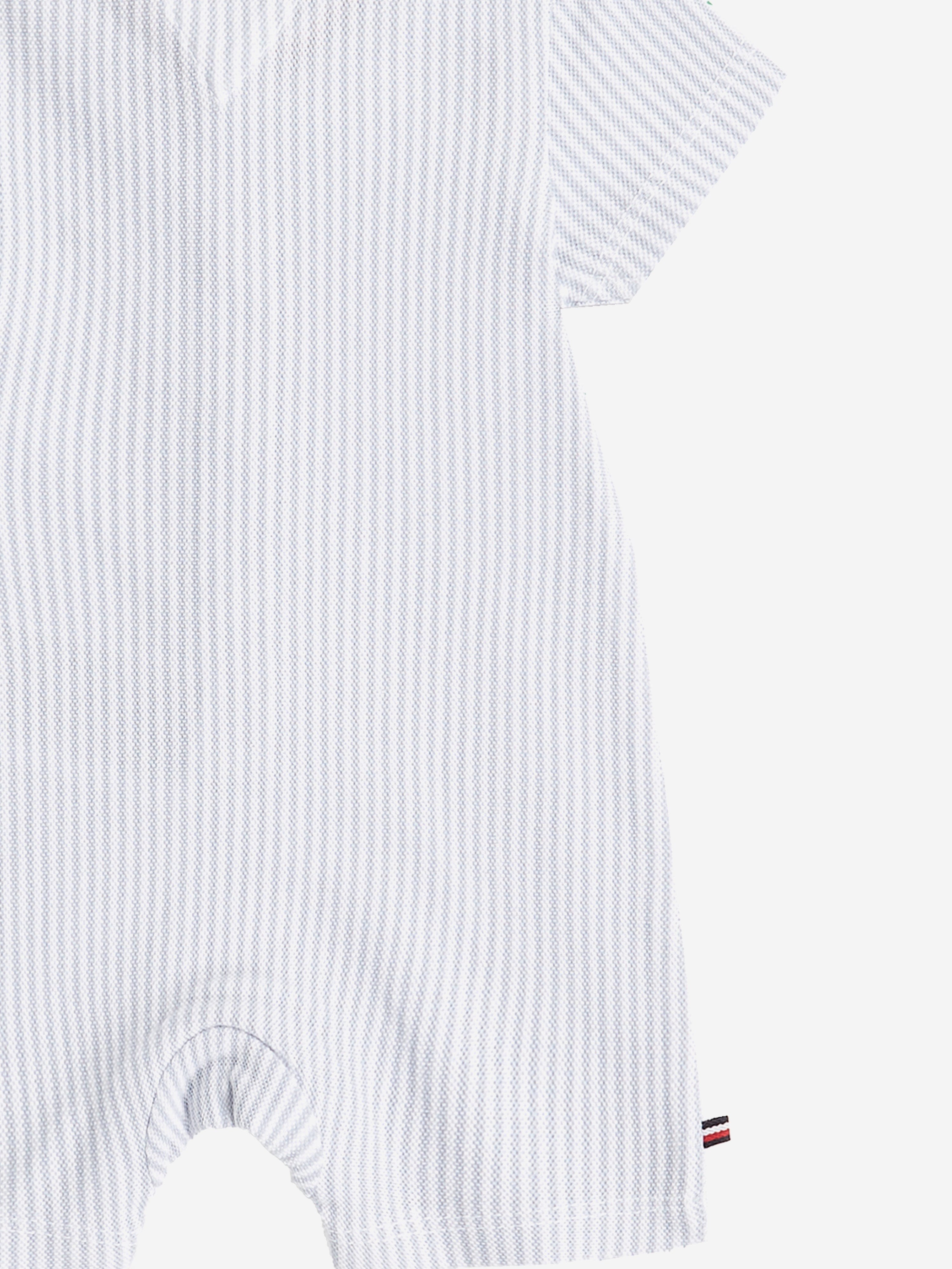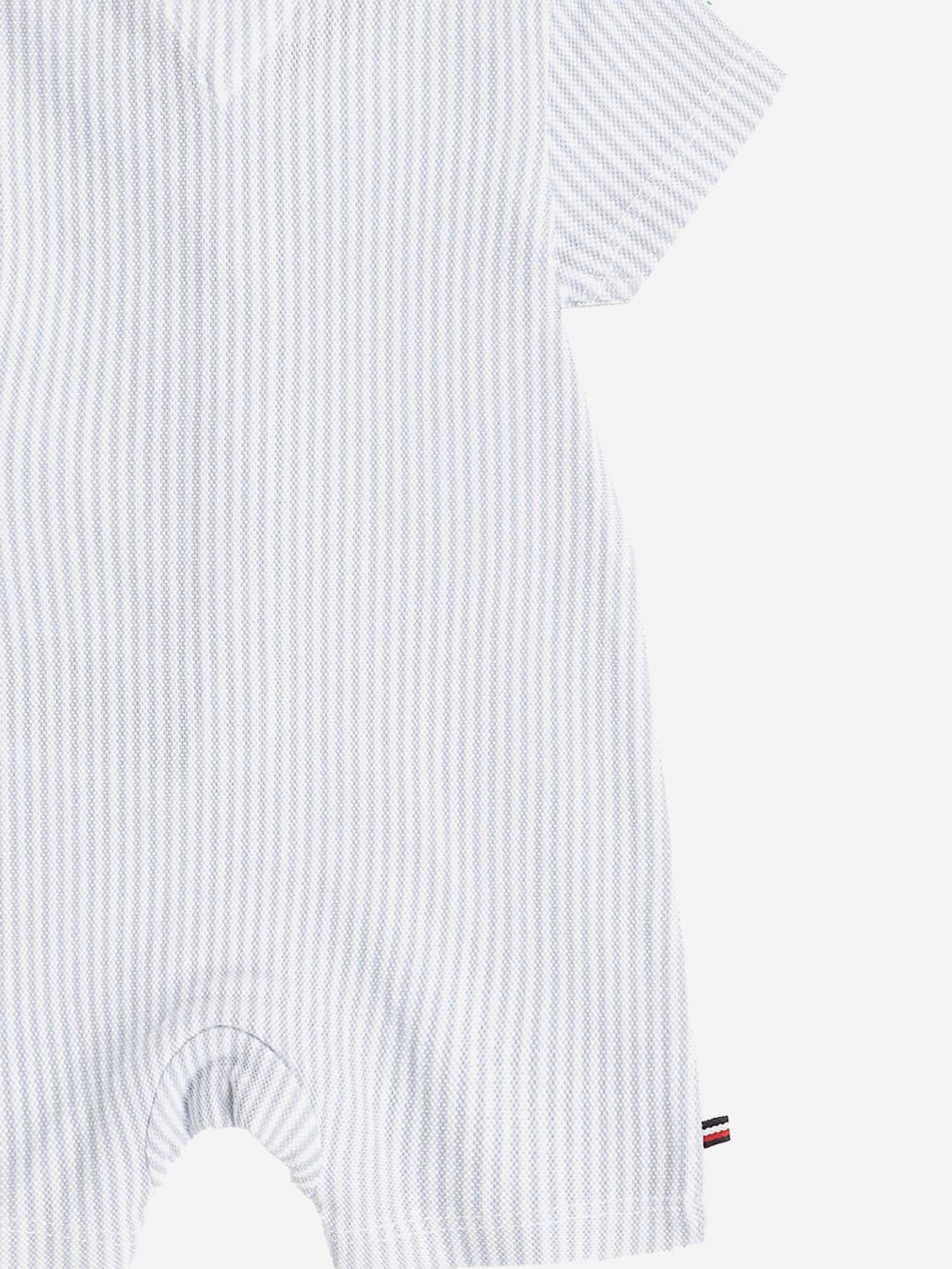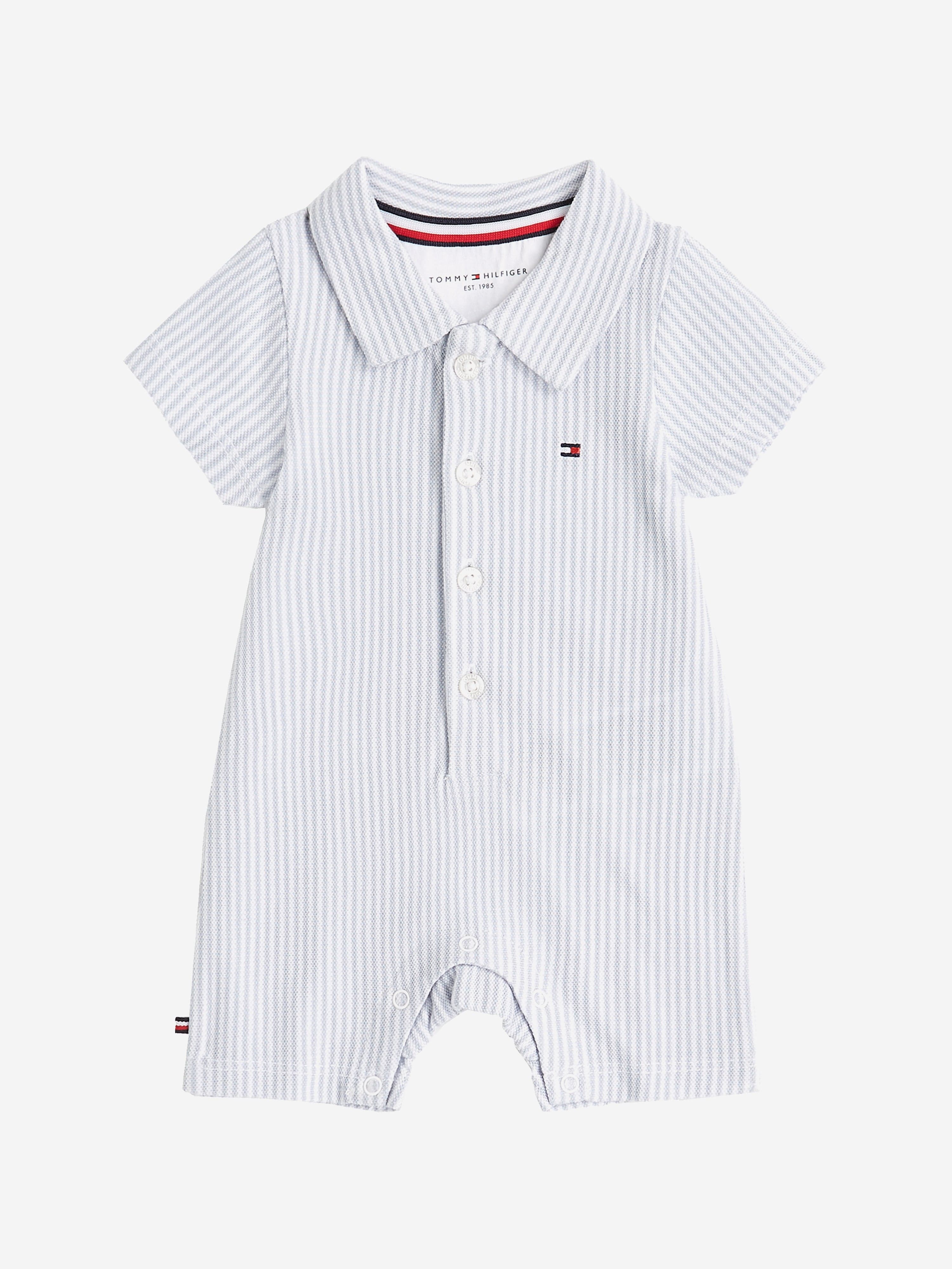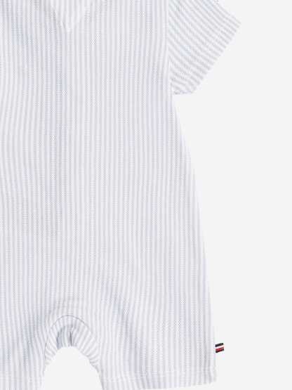 Introducing the SS2025 Tommy Hilfiger Baby Boys Striped Romper in Blue, an exquisite staple for your little one’s wardrobe.