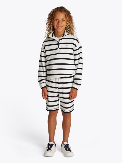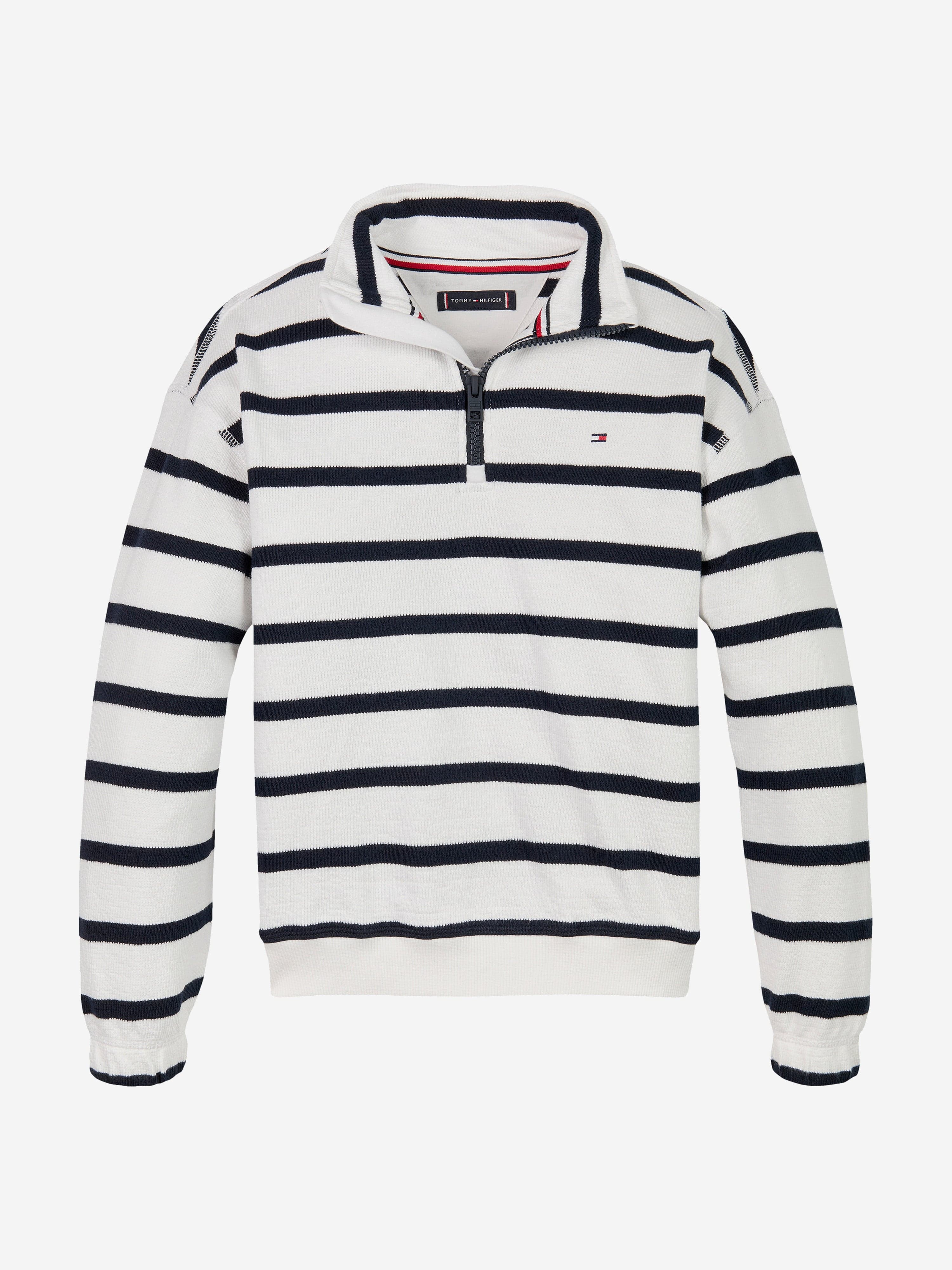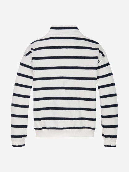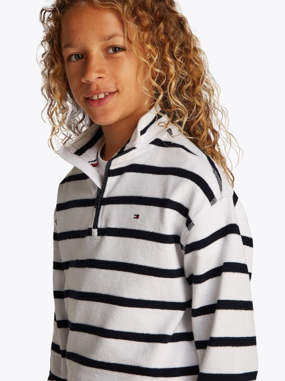 Tottgmmy Hilfigttger Boys Breton Stripe Half Zip Sweatshirt in White