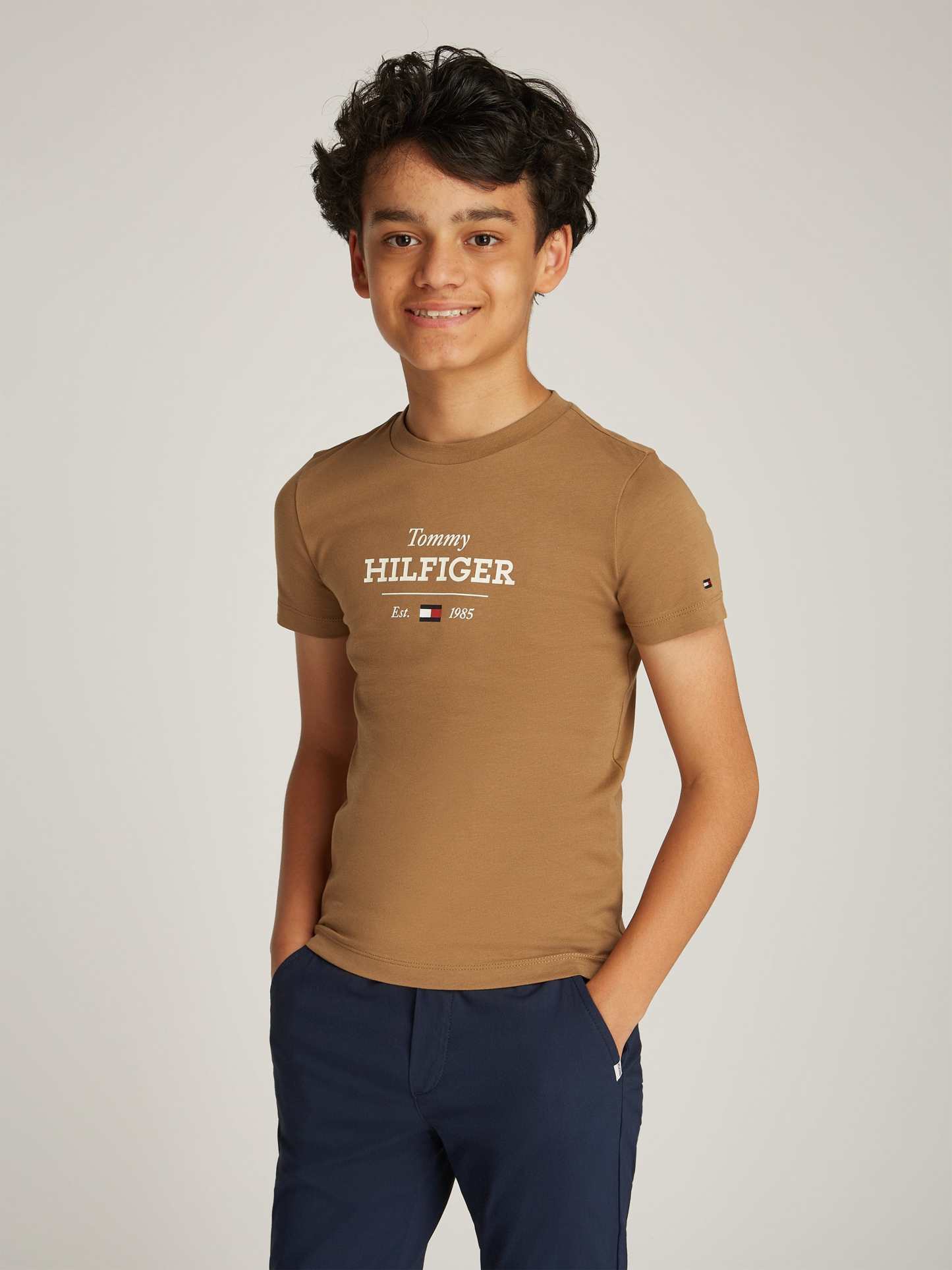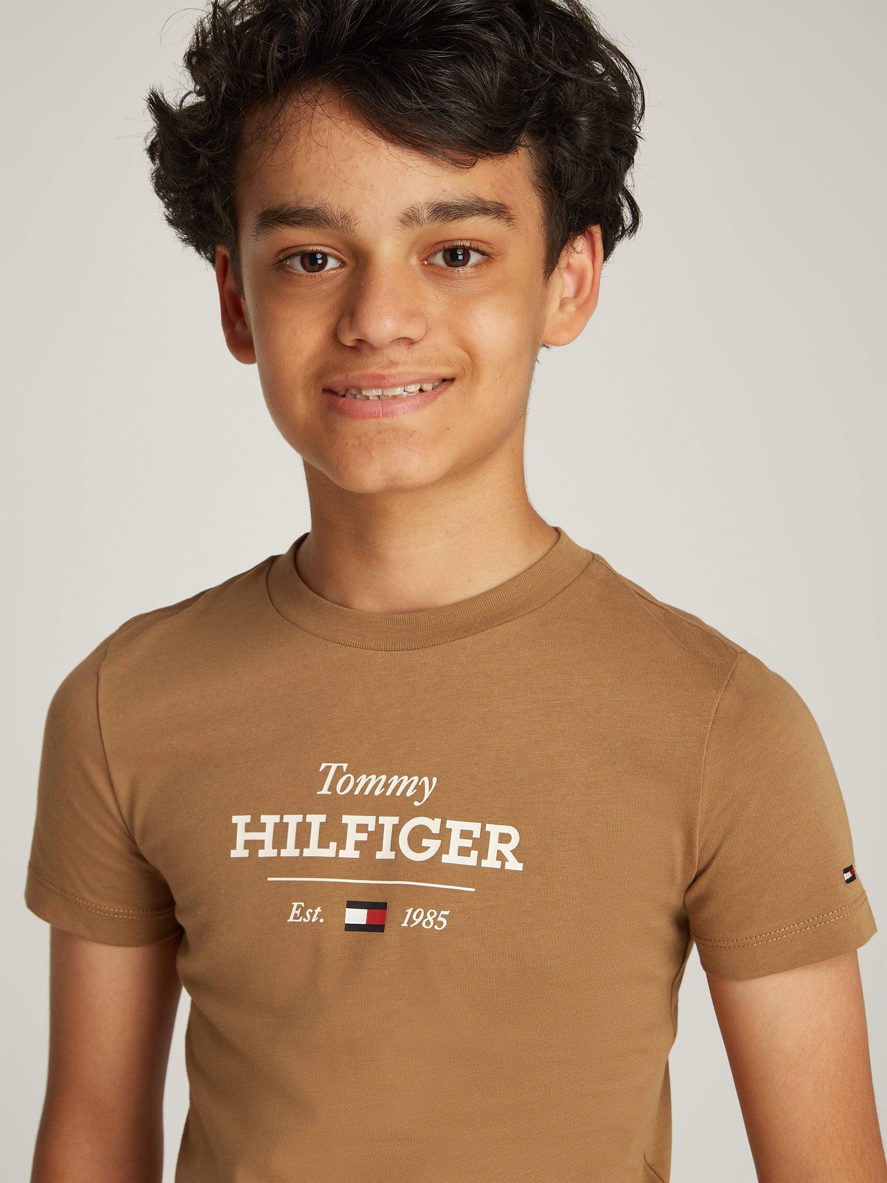 Discover the epitome of style with the Boys Monotype 1985 Regular T-Shirt in Brown, meticulously crafted by Tommy Hilfiger for SS2025. This quintessential garment is designed to add a sophisticated yet playful touch to your boy's wardrobe. Key features include: