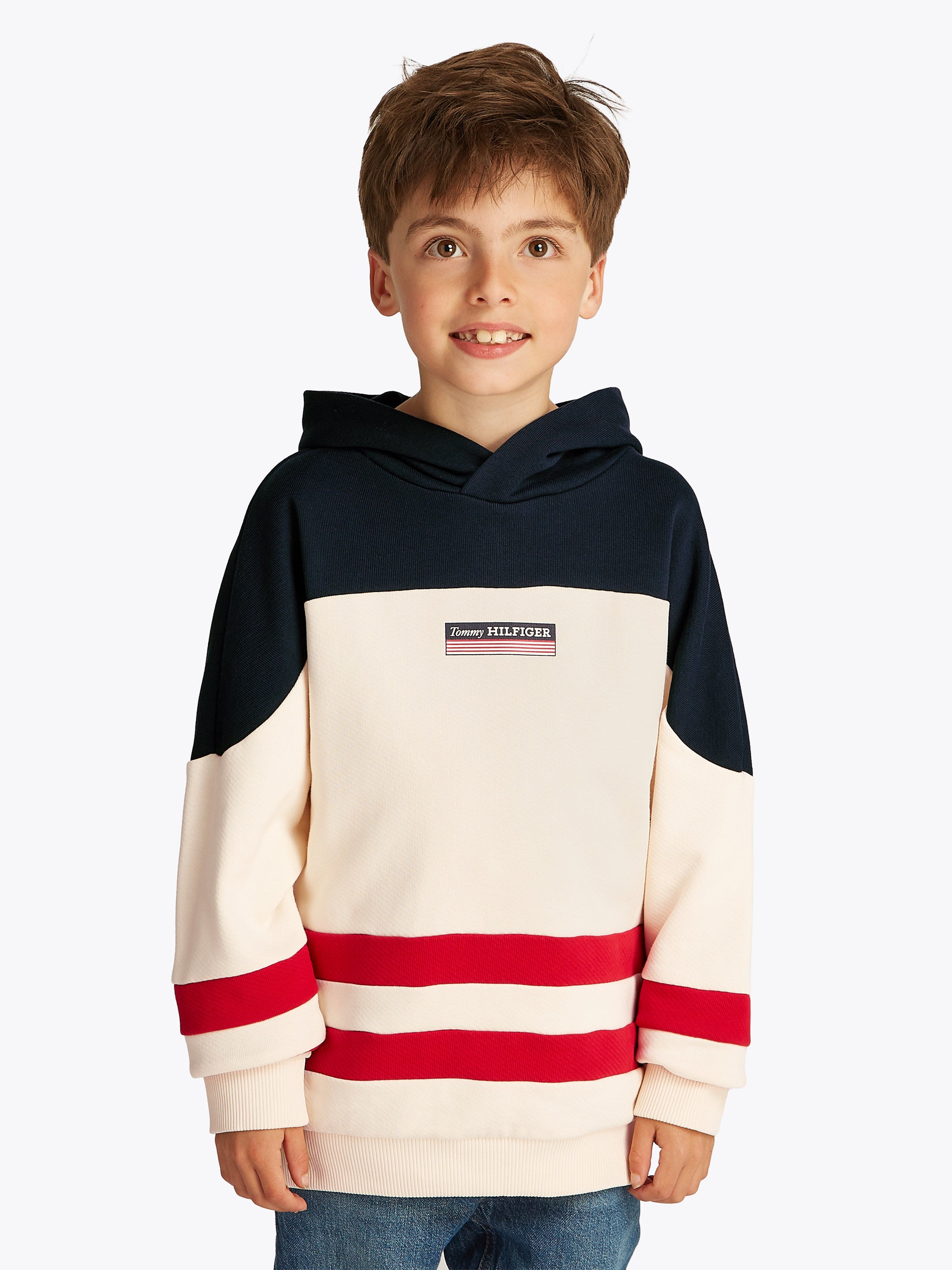 Introducing the Tommy Hilfiger Boys Monotype Striped Hoodie in Multicolour, an exquisite addition for SS2025. Perfectly blending style and comfort, this designer piece is a treasure in your young one's wardrobe. Key features include: