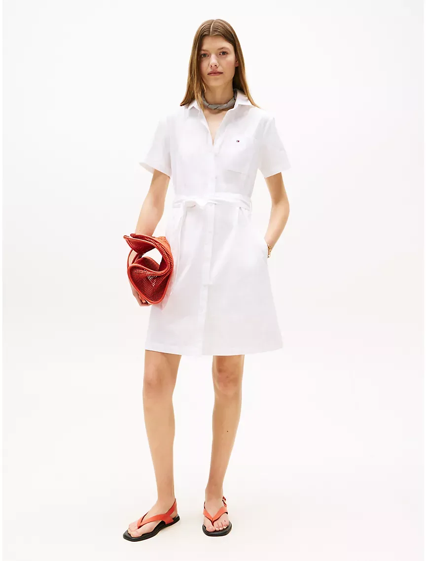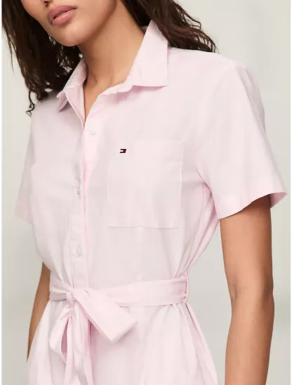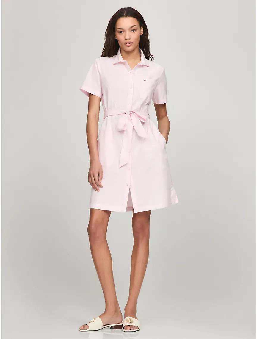 Short-Sleeve Belted Oxford Shirtdress