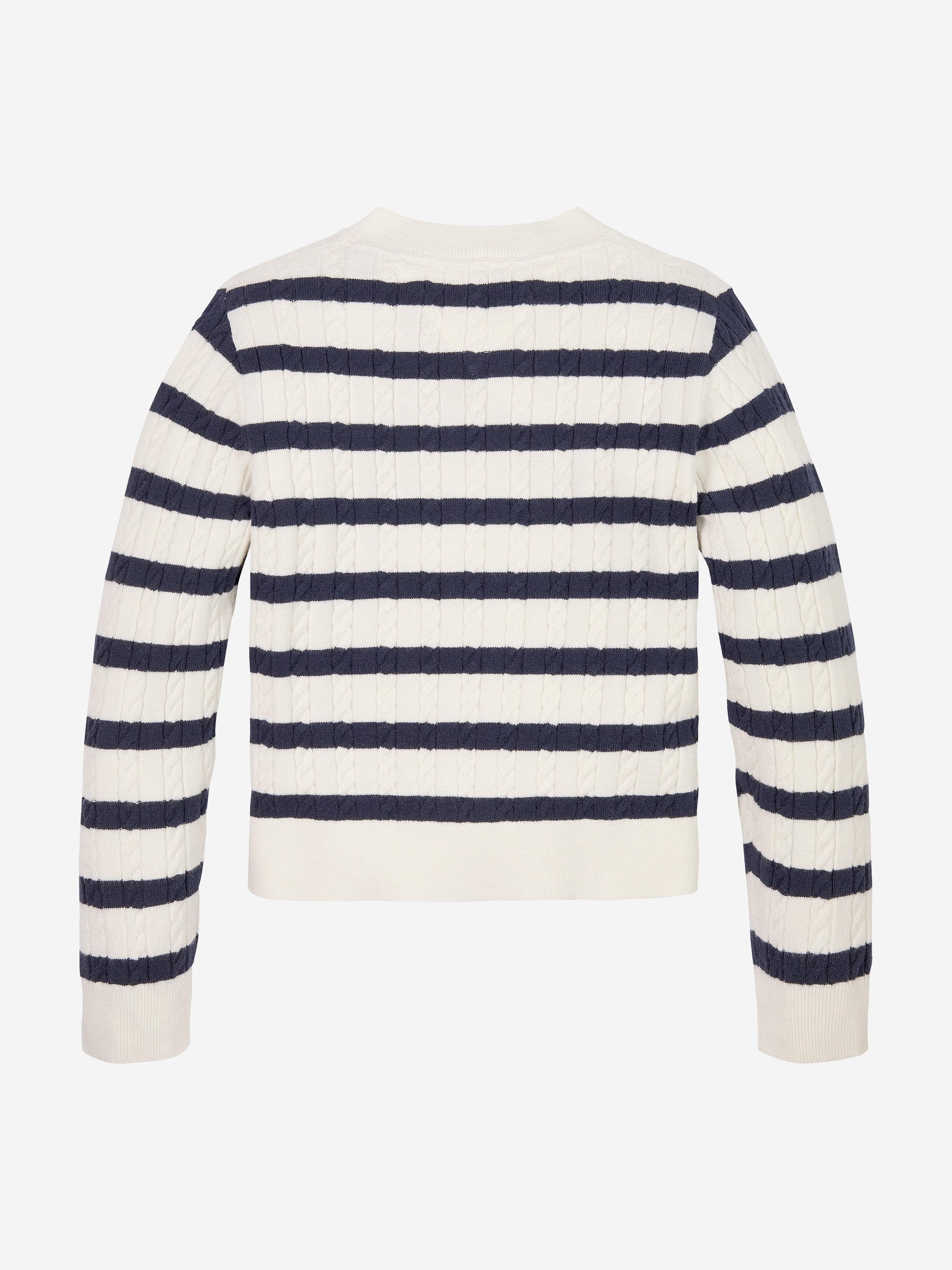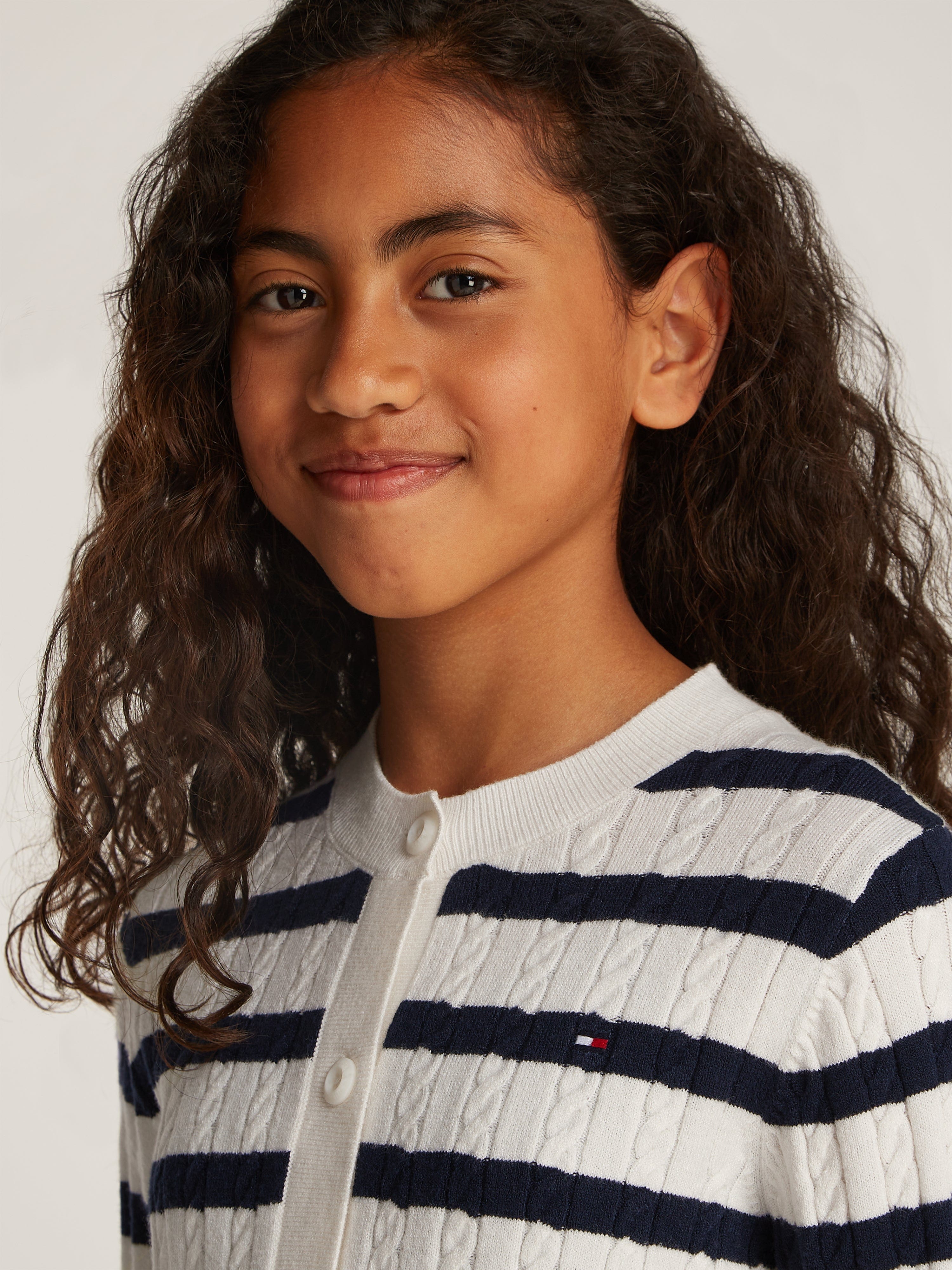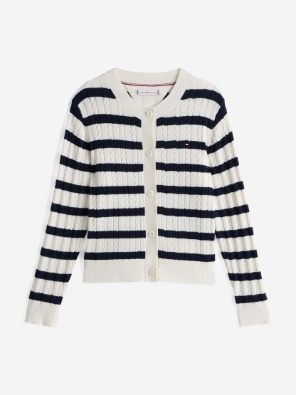 Introducing the Girls Mini Cable Knit Cardigan in Multicolour by Tommy Hilfiger — the quintessential addition to any discerning young lady's wardrobe for SS2025. Each stitch promises to blend timeless elegance with playful modernity. Key features include: