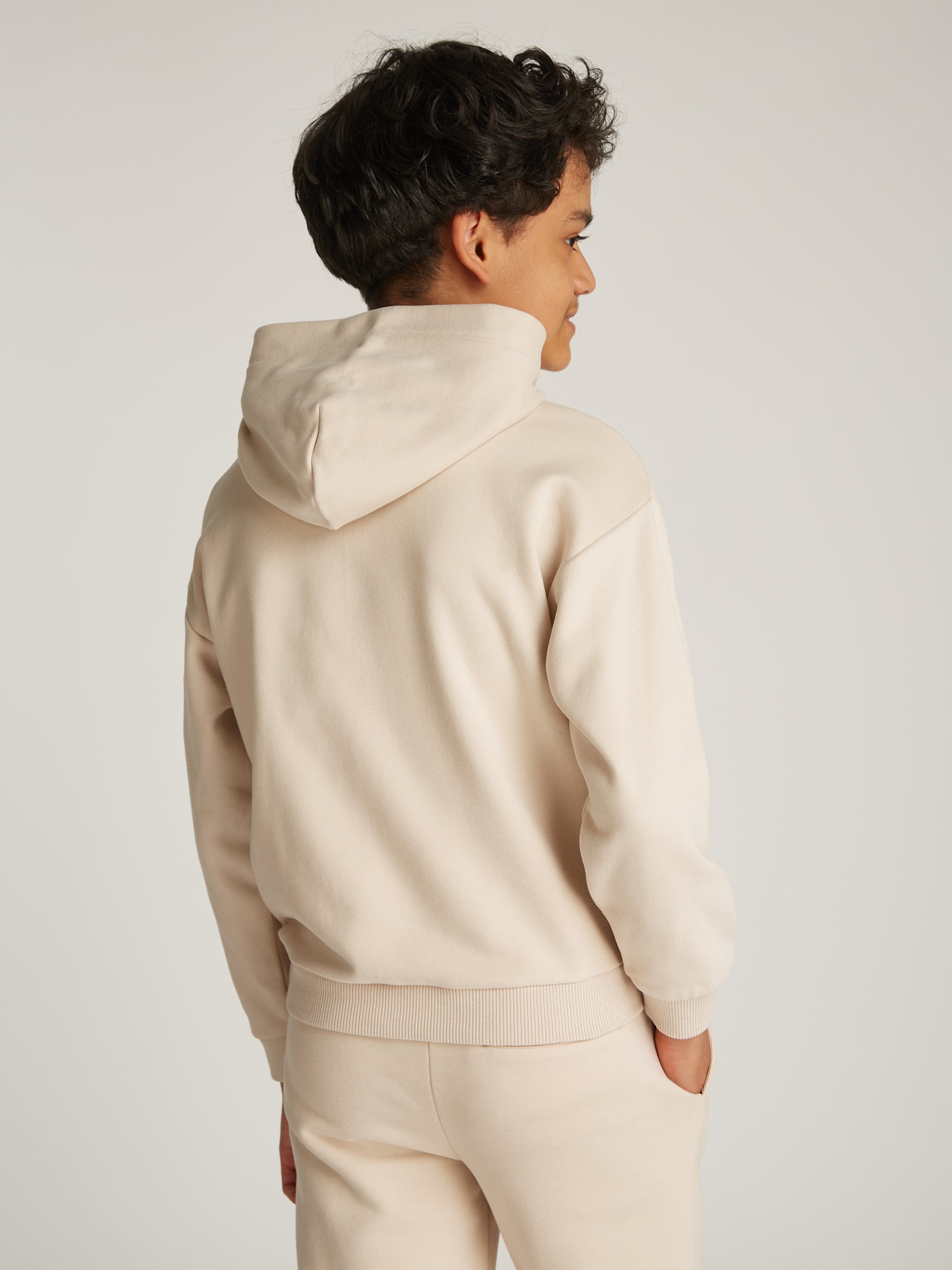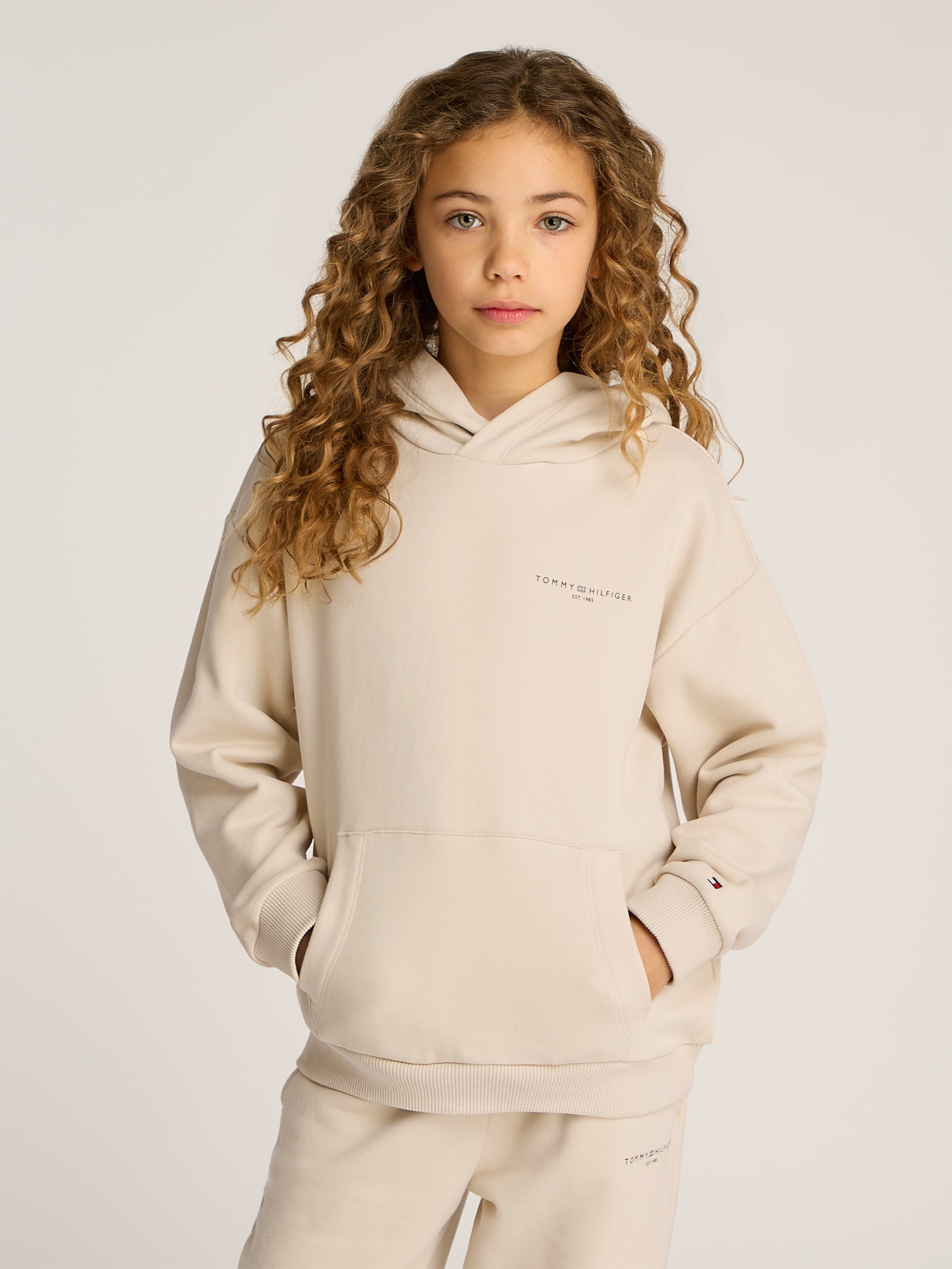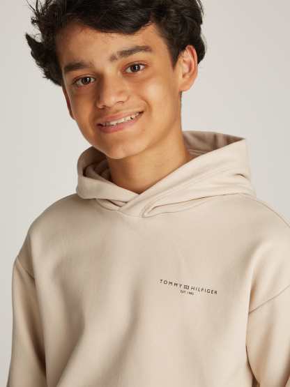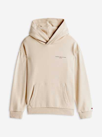 Introducing the Kids Mini Corp Logo Hoodie in Beige - a quintessential Tommy Hilfiger piece for SS2025, elegantly tailored for both boys and girls. Revel in its unique charm and comfort: