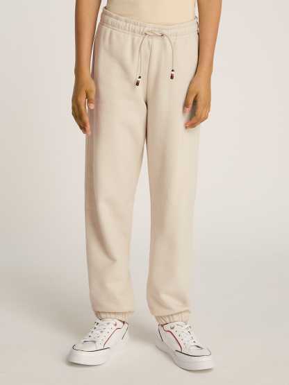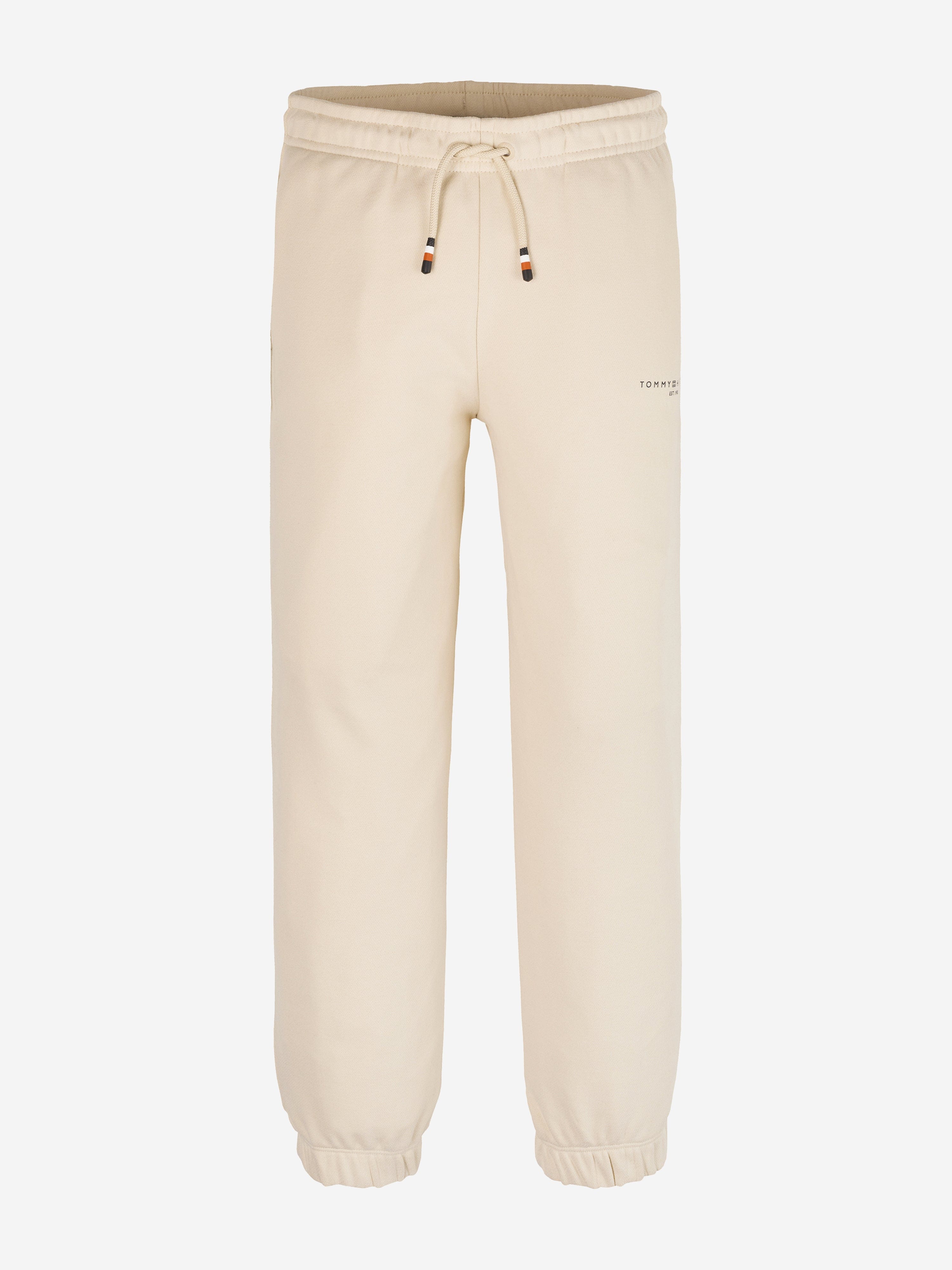 Introducing the exquisite Kids Mini Corp Logo Joggers in Beige by Tommy Hilfiger, a quintessential addition to any young trendsetter's SS2025 wardrobe. Crafted with precision, these joggers blend luxury and playfulness: