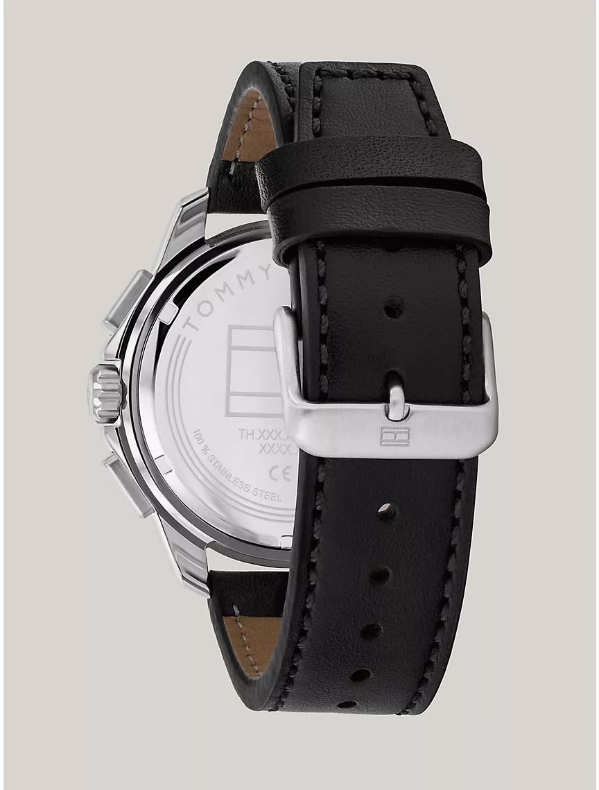 44MM Multifunction Black Leather Watch
